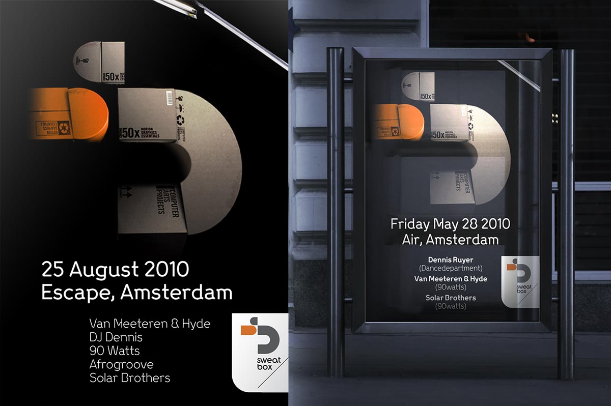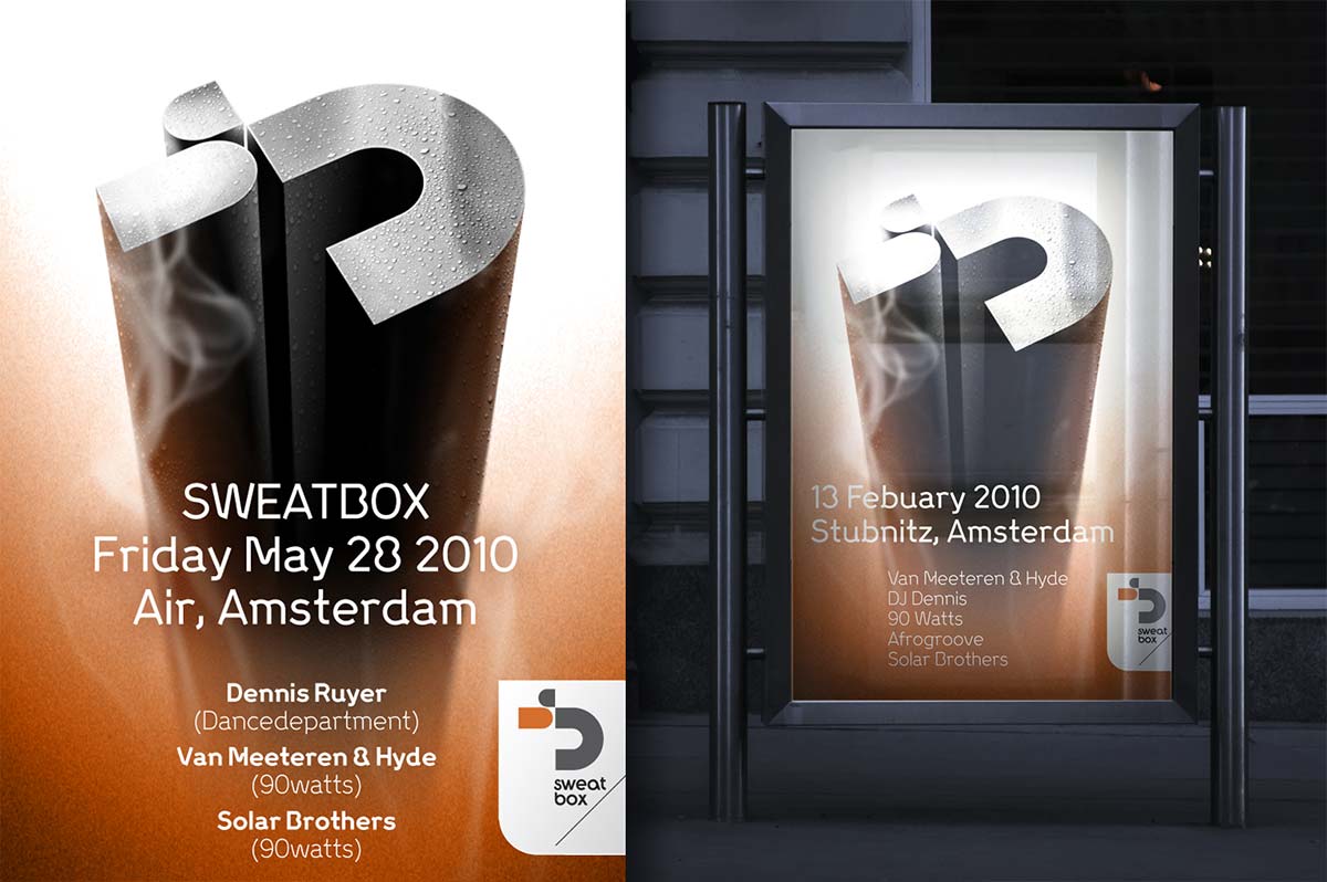 Sweatbox is a touring clubnight, serving up deep techno and house from a rotating DJ setlist. We created an iconic identity and flexible branding system