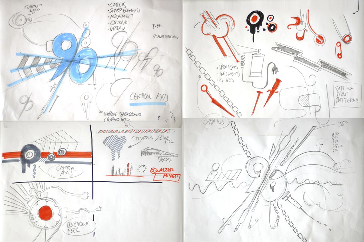 Initial concept development for Dutch record label 90 Watts - a provider of high quality dance music. A Reaction Chamber project.