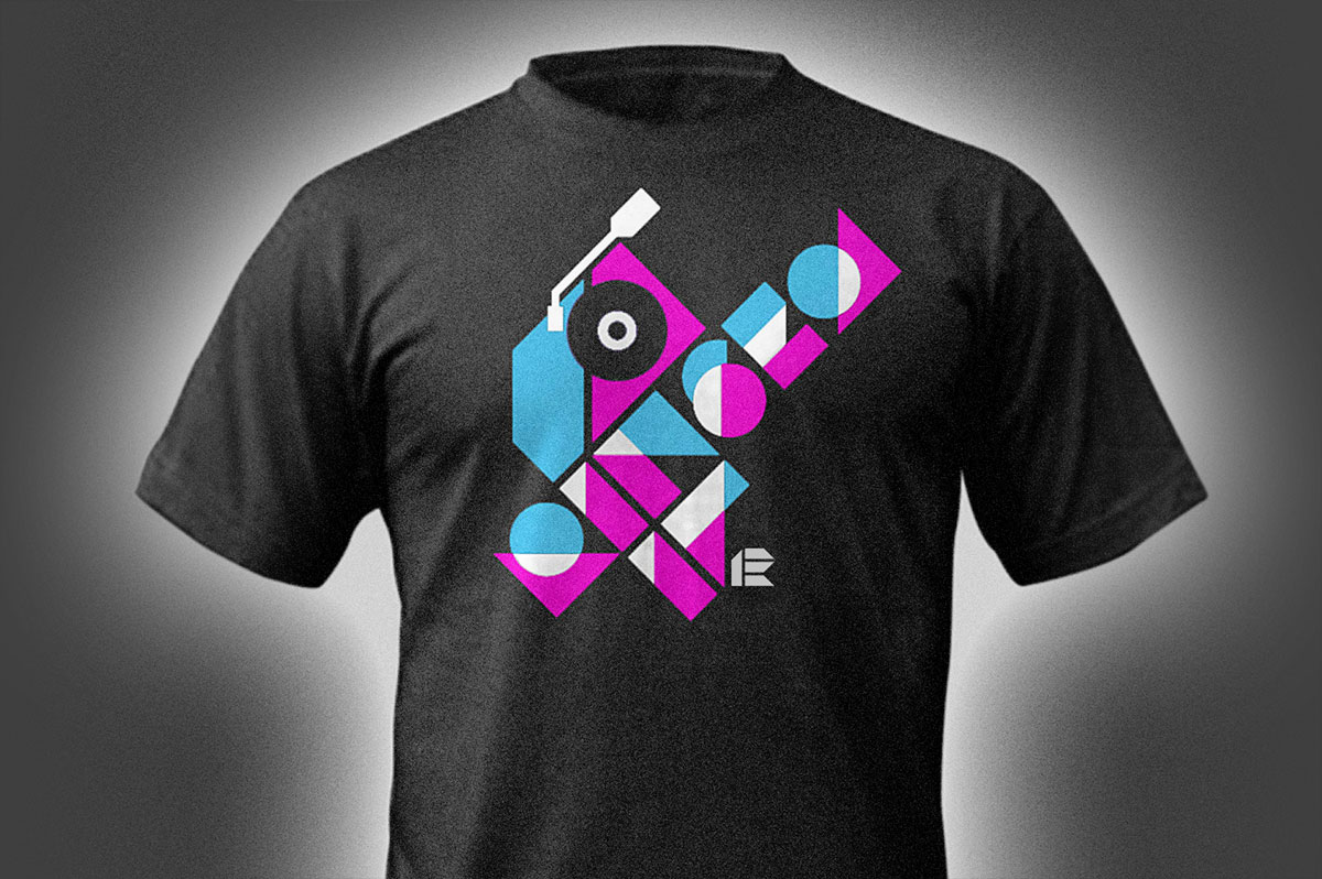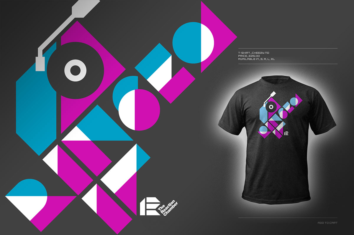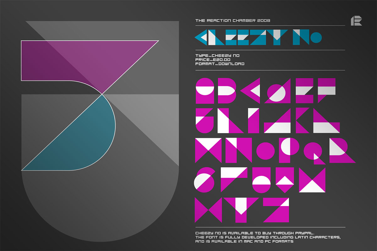 Experimental headline typeface and T-shirt application, based on geometric forms. Available for free, please email a request. A Reaction Chamber project.