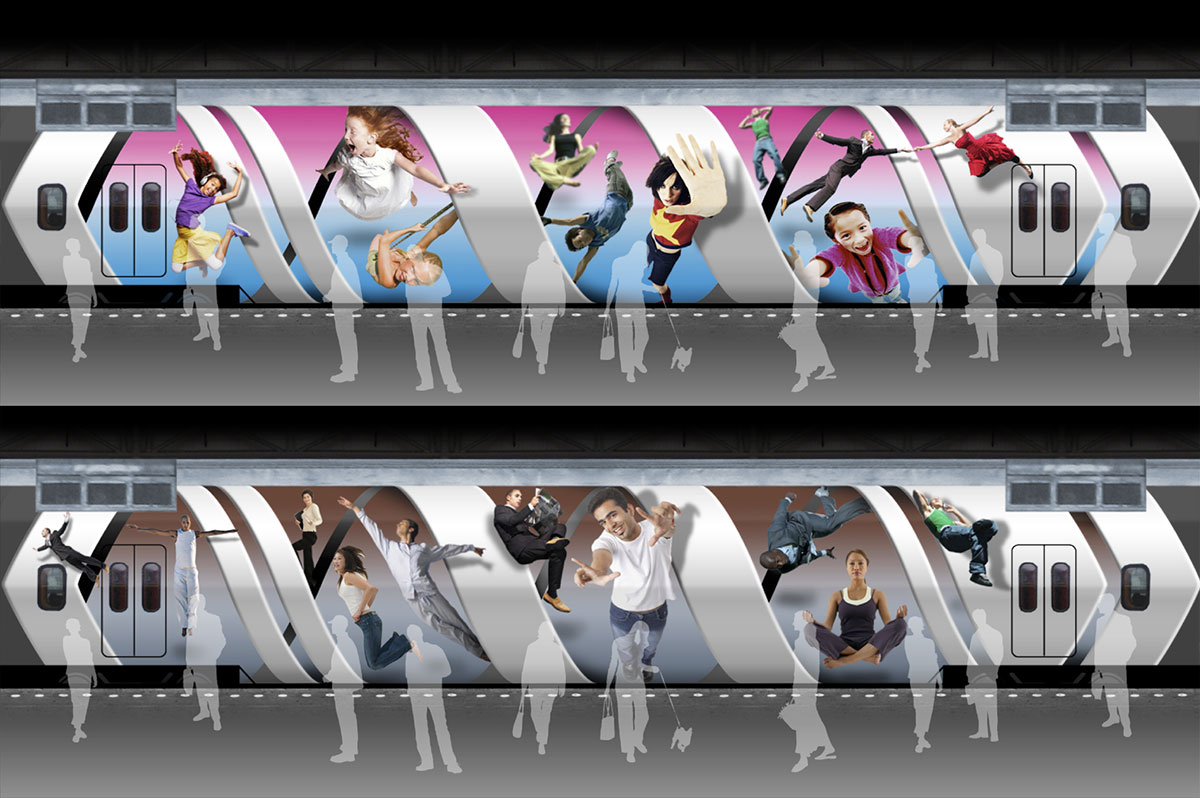 The Dutch Railways (NS) developed concepts for a revolutionary train experience called Pioneer, based on commuter moods when traveling. Coated with LEDs the train would serve as a broadcast device with endless possibilities. Also shown are a range of cross-channel applications. Worked on @ VBAT.