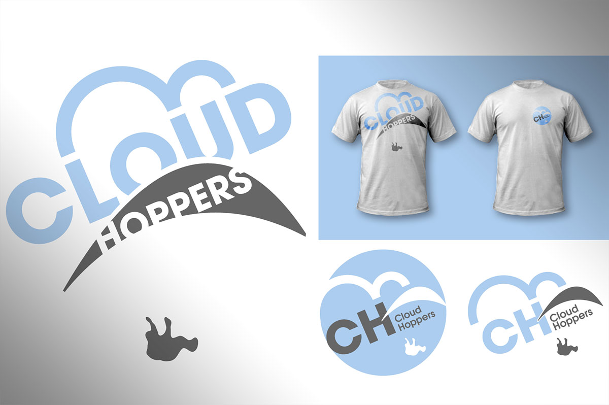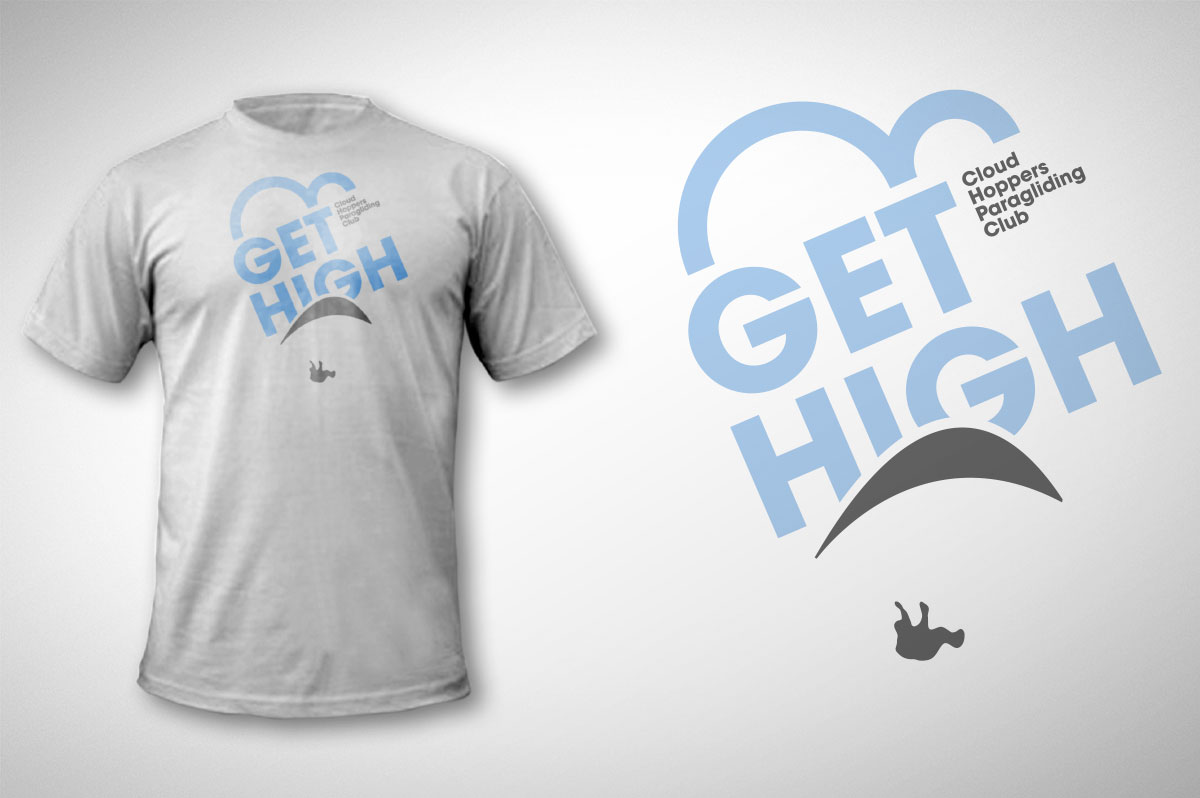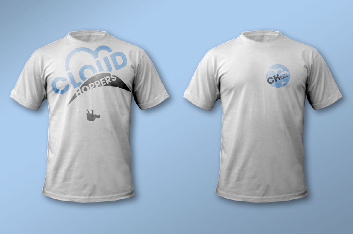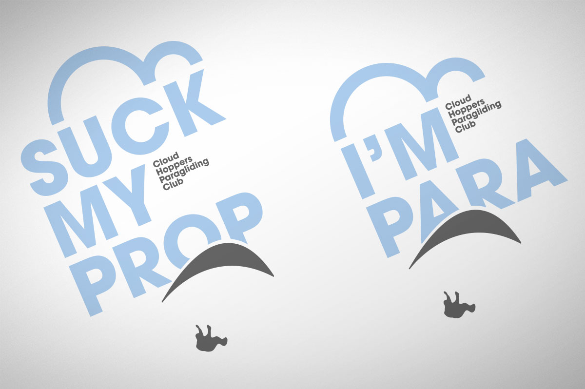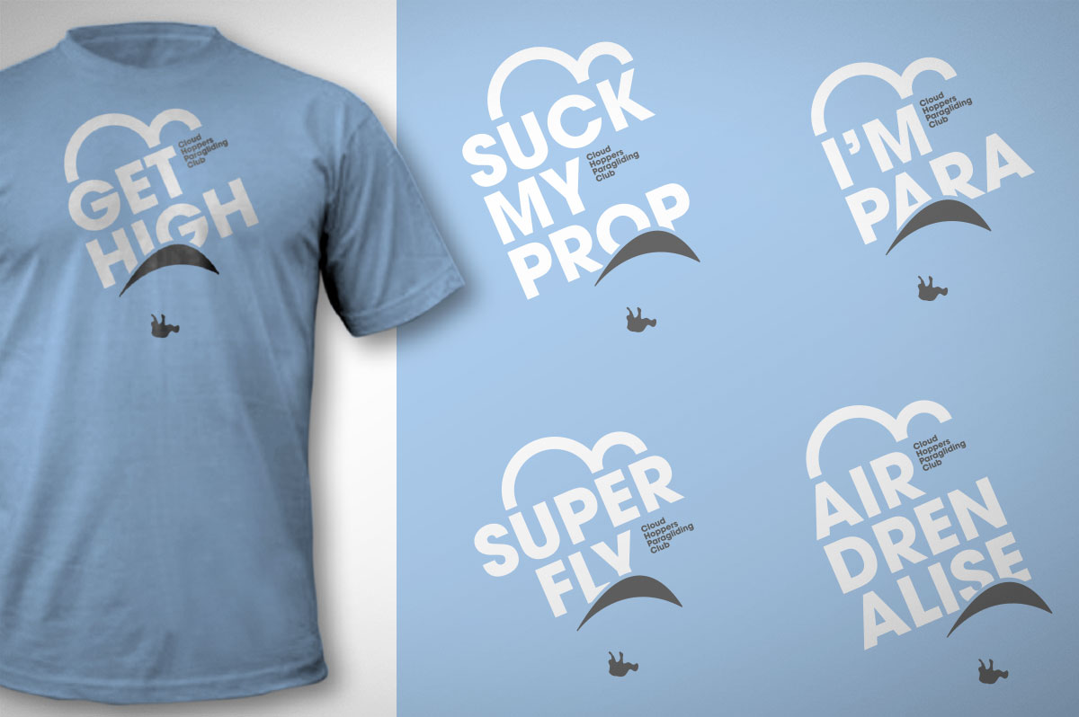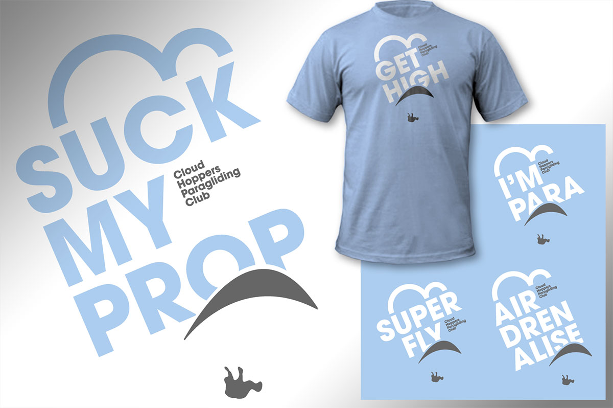 Tongue-in-cheek branding and T-shirt applications for a Paramotor members club.
