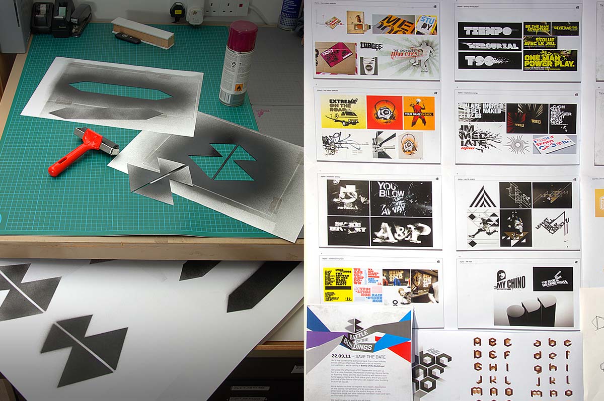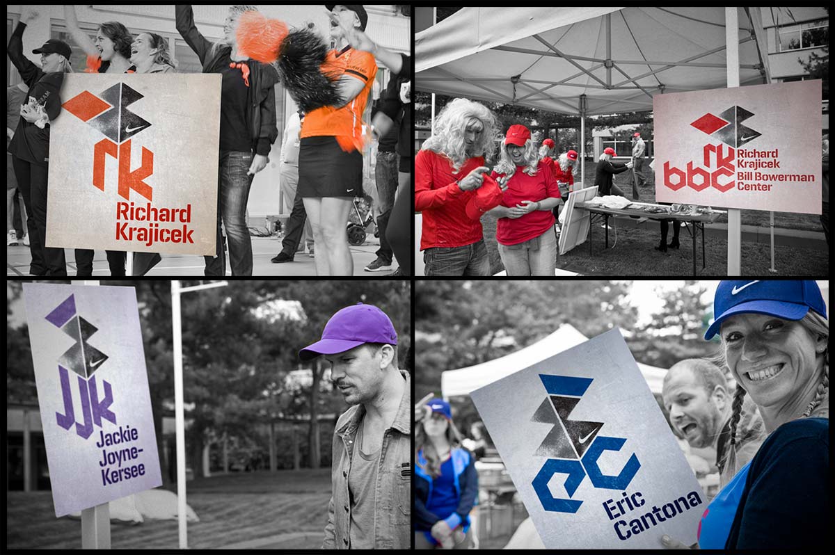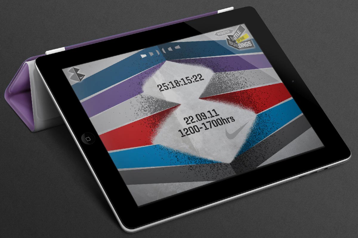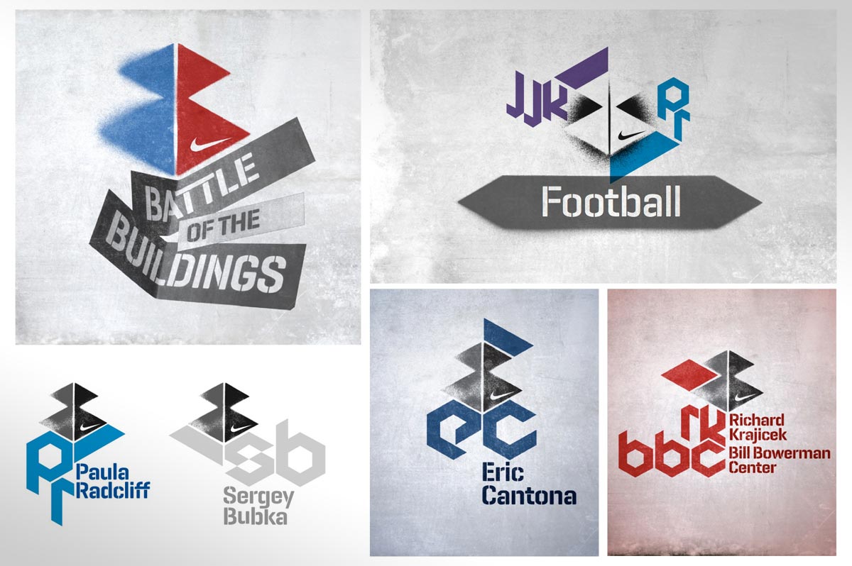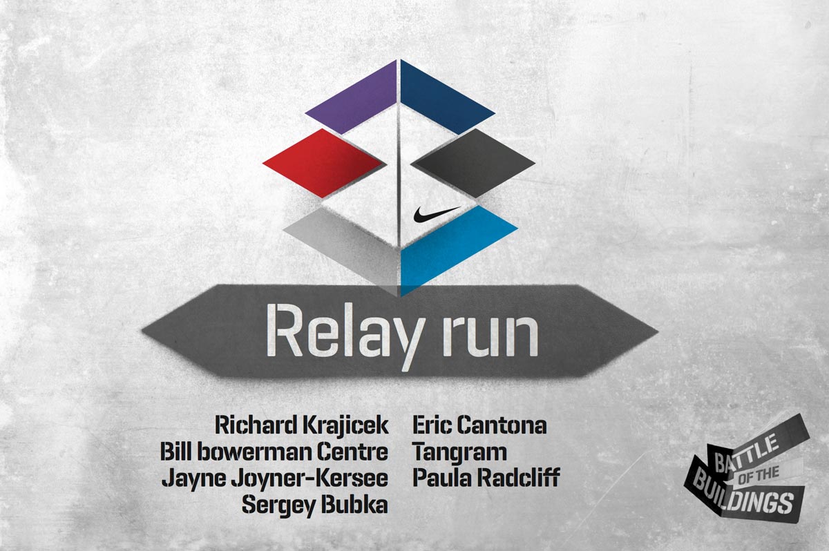 Annual corporate event held on the Nike Campus in Hilversum, Holland. Based around the friendly rivalry of the 6 campus buildings, the identity and supporting material echos both attitude and fun. Designed in collaboration with Indeed.