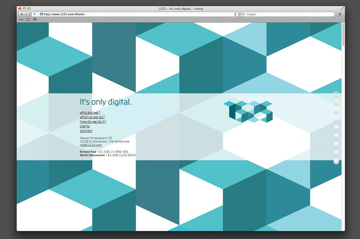As the digital unit within the OY Group, 1525 specialize in creating simple solutions to complex digital challenges. Using variable data (web traffic, power usage etc), a dynamic identity was developed with the ability to alter appearance within set parameters. Designed in collaboration with Indeed.