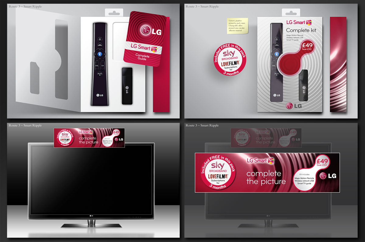 To help boost sales, LG bundled their Magic Motion gesture-controlled remote with a dongle and third party offers. The pack and accompanying literature was developed to enable updated offers with minimal re-printing.