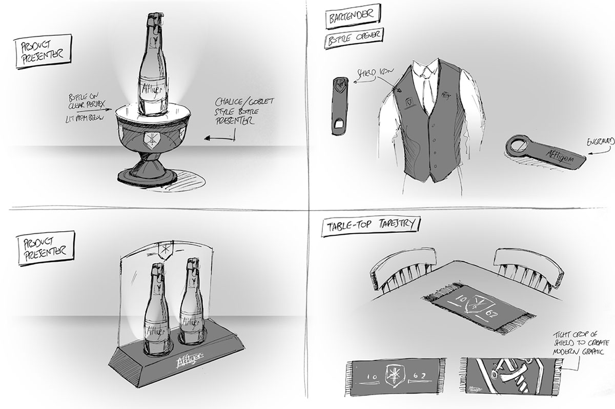 As one of the leading Belgian beer brands, Affligem's new POS range aims to redefine the category. Combining the values of 'Timeless Artisan' with Craft and Indulgence, each item creates a multi-sensory, premium experience. A freelance project with Sunshine & Sausages. 3D modeling by Stephen Goalby.
