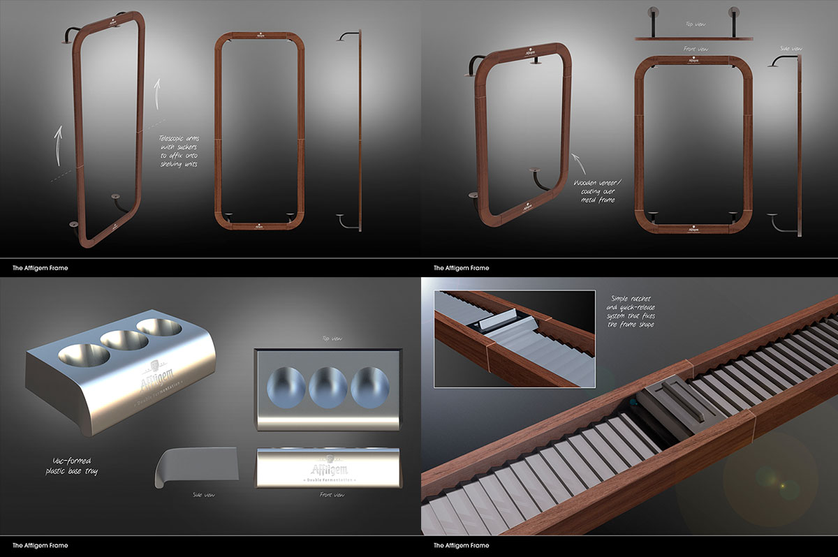 Aimed at redefining the Speciality beer category, this premium POS material was designed for maximum visibility. Taking cues from wine and whisky, a disruptive approach was developed to help consumers discover and explore the brand. A freelance project with Sunshine & Sausages. 3D modeling by Stephen Goalby.